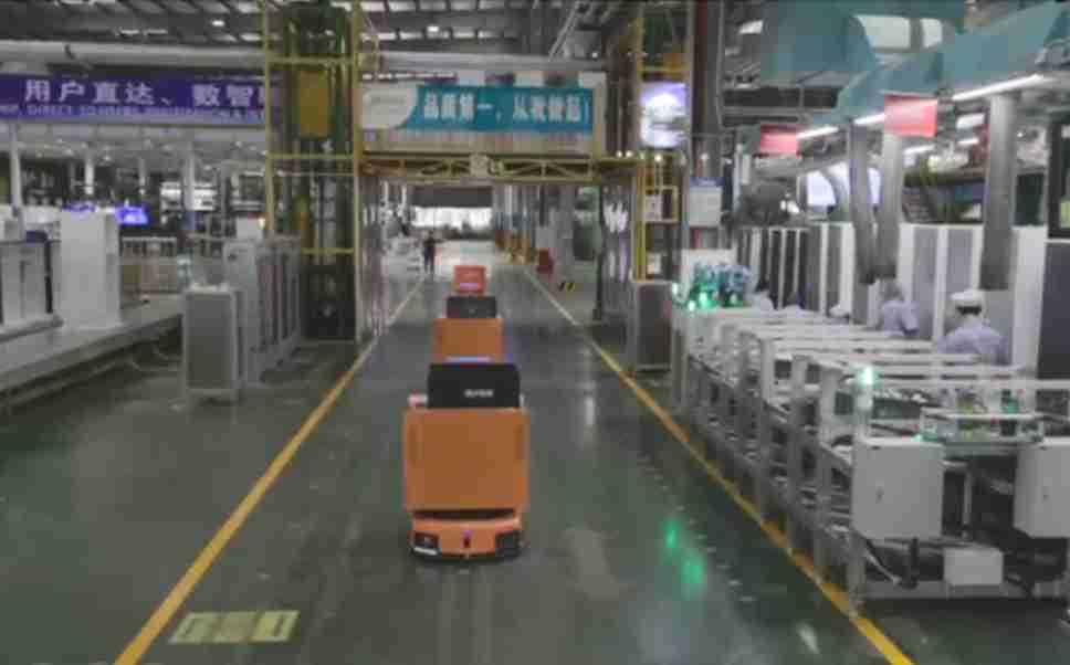 为车载冰箱物流配送打造的智能解决方案,,,包含产中物流通过潜伏举升AMR搬运至线边,,,,产后成品物流智能仓储,,,流程包含产中物流智能齐套入库,,线边安灯叫料AMR智能配送至线边,,,,成品入库、、、、出库,,,,通过无人堆高车机器人,,,,智能仓储管理替代人工作业管理,,,实现更高存储、、更高效率、、、、更具柔性化的解决方案。。。