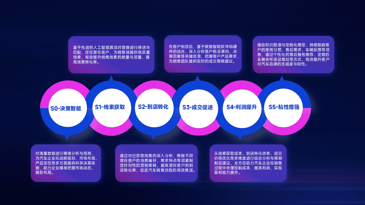 通过拓宽潜在客户来源、、优化线索分配并提高到店转化率,,以增强销售效率。。。。同时,,,利用线索数据不断优化分析模型,,有效提升转化率,,,,扩大营销影响力。。